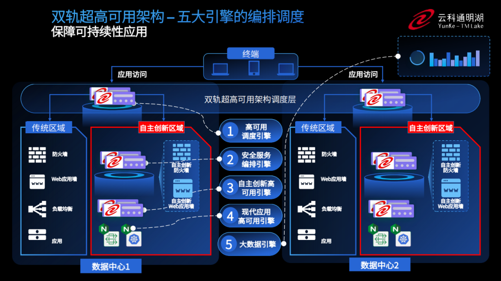 为实现双轨超高可用架构信创区和非信创区的跨域协同,实现信创区域和非信创区域的平滑过渡,kaiyun开云电竞通过五大引擎实现多层次的应用可持续性。